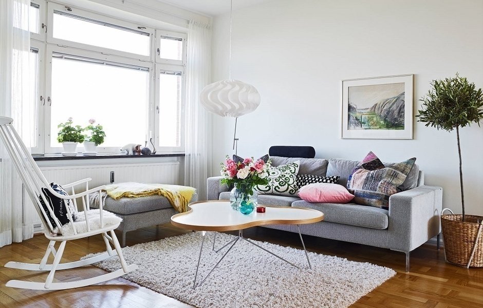 Придайте гостиной свежий весенний вид, купив новый яркий ковер, шторы, декоративные подушки и уютный плед. Важно, чтобы предметы декора сочетались друг с другом и гармонировали с общей цветовой гаммой комнаты. Не бойтесь цвета: сочные оттенки синего, желтого, красного и зеленого актуальны как никогда.