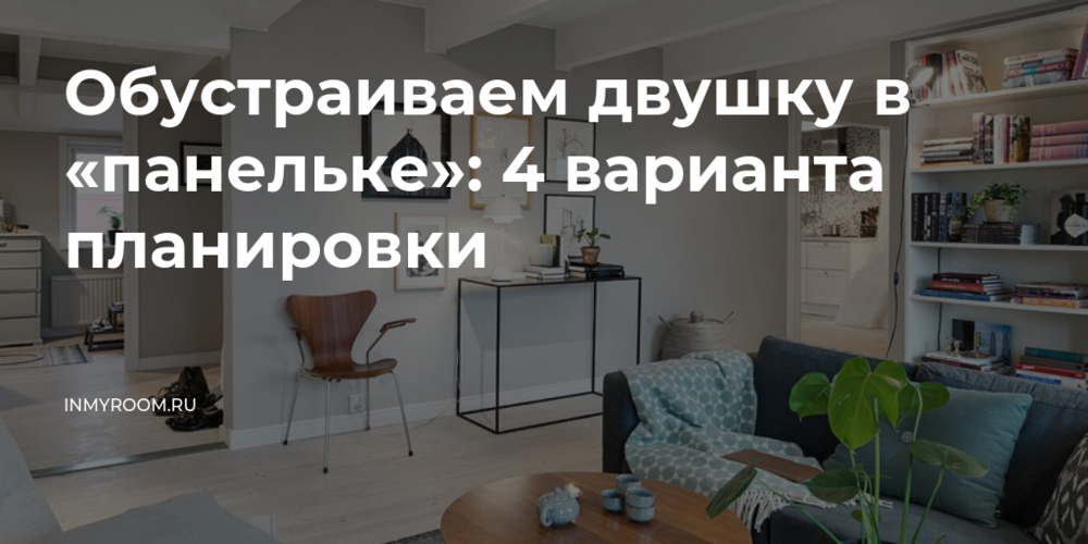 Для семейной пары квартиру можно сделать комфортной даже без перепланировки. Большую комнату используем как гостиную и кабинет – для зонирования поставили стеллаж с книгами. В маленькой комнате поместилась кровать и несколько шкафов для хранения. Санузлы объединили – сразу появилось место для душа и стиральной машинки. С хранением в квартире тоже нет проблем.