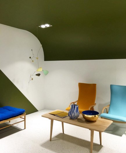 Прежде всего отмечу глобальную тенденцию на ретро 70–80-х годов: яркие цвета, необычные сочетания в виде акцентов в нейтральных серо-бежевых интерьерах. Удивило появление красного цвета. Золотой металл присутствовал на многих стендах, но не барочный, а скорее, более простой – никаких витиеватых форм, все лаконично и даже строго.