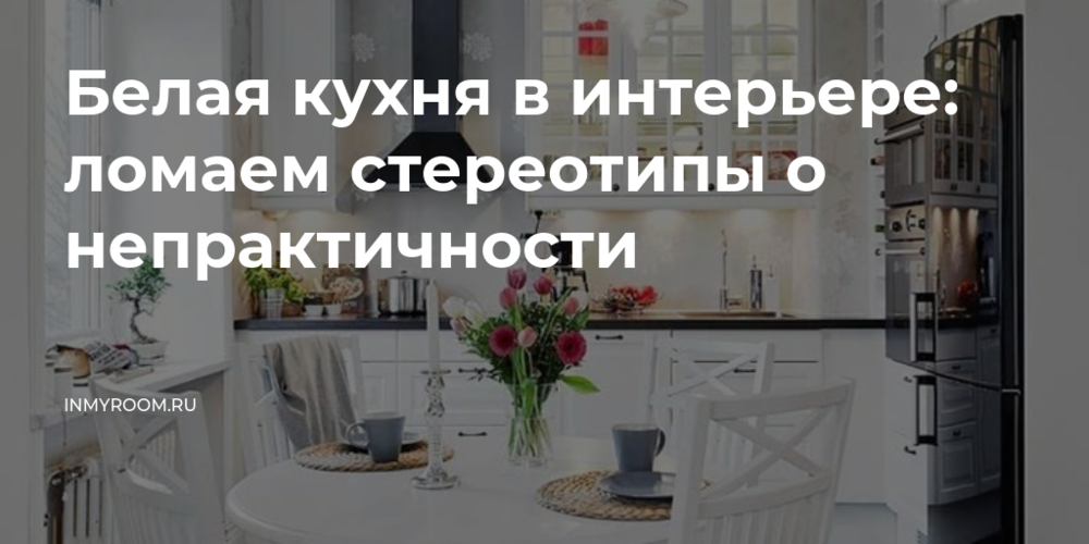 Многие не верят, что стереотип о непрактичности белой кухни имеет обратное утверждение. На таком фоне достаточно сильно видны пятна и разводы и уборка на кухне станет достаточно частым процессом. Но если серьезно подойти к выбору материалов при дизайне белой кухни, то трудностей не возникнет. Моющие обои или стены под покраску, декоративная плитка и влагоустойчивый пол позволяют с легкостью смывать пятна различного характера. Безусловно, светлая кухня требует ухода, но в то же время дарит настроение и уборка становится радостью.