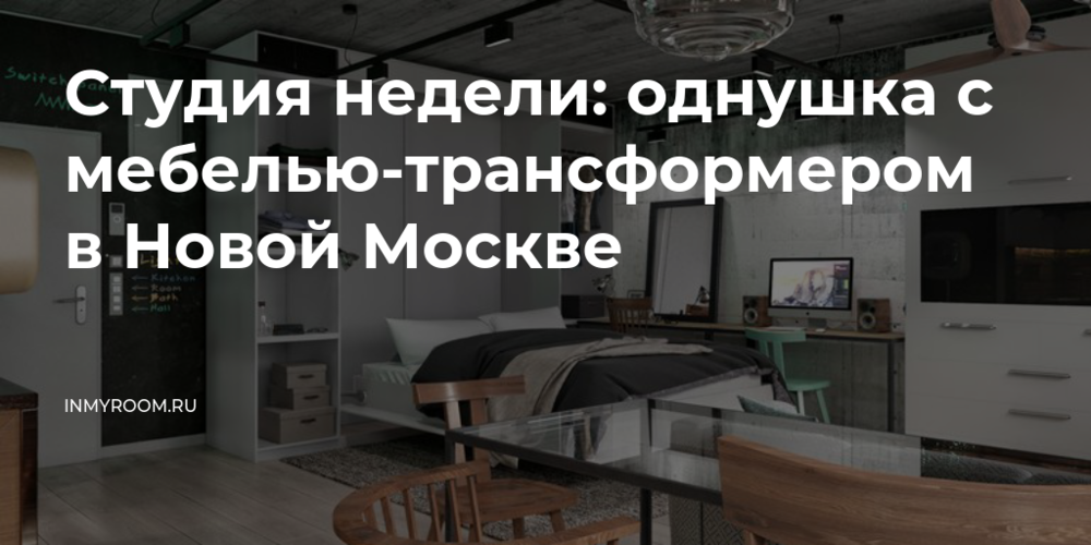 Кровать спрятали в шкаф: в дневное время спальное место уступает место рабочему и туалетному столикам. На первый взгляд, гостиная зона ничем не примечательна: диван и шкаф со встроенным телевизором – но и он может удивить. Например, секцию с телевизором можно двигать и смотреть кино не только с дивана, но и с кровати.