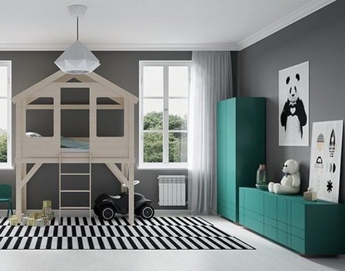 От 3 до 7 лет. В этот активный период жизни, акцент делайте на игровой части комнаты. Физическая активность очень важна в этом возрасте.