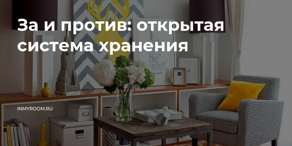 Открытая система хранения идеальна, если это симпатичный стеллаж, на полках которого собрана коллекция памятных вещей или декоративных предметов. Но если мы говорим об открытой системе хранения вещей, то ситуация меняется кардинально. Обилие мелких предметов и вещей в открытом стеллаже визуально превратит жилую комнату в большую гардеробную.