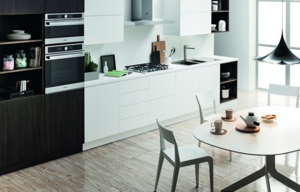 Так, за высокий уровень комфорта на кухне отвечают безопасные бытовые приборы с низким уровнем шума. «Тихая» посудомоечная машина, вытяжка, холодильник, кофемолка точно не будут мешать общению, а значит и гости не сбегут из кухни.