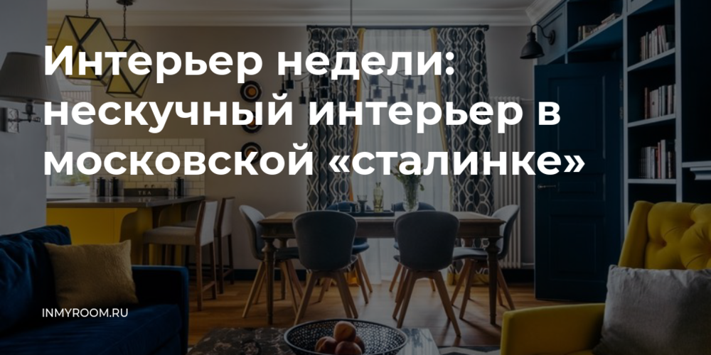 Цветовая палитра строится на глубоких синих и задорных желтых оттенках, которые сочетаются, сменяя друг друга, из комнаты в комнату. Взрыв цвета пришелся на зону кухни и гостиной: канареечная кухня и гостиная глубокого синего цвета.