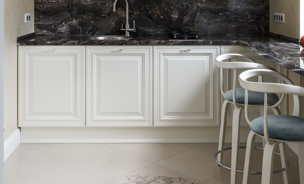 Напольное покрытие: керамическая плитка, Atlas Concorde; керамогранит, La Fabrica; декоративная вставка на кухне, Rozone Zodiaco Eos