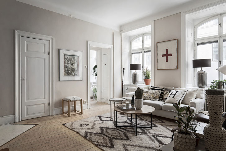 Эта светлая и довольно просторная квартира в Швеции – наглядное подтверждение того, что скандинавский интерьер – это необязательно холодная белизна, простота и минималистичность.