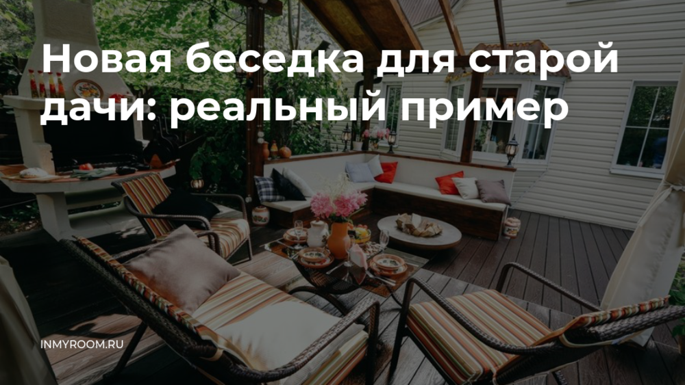 Лавка из бетона, которую строители не смогли демонтировать, стала дополнительной опорой для стены. Ее спрятали внутри конструкции, обшили досками и покрасили в тон беседки.
