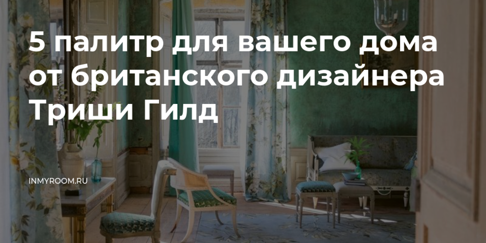 В сентябре прошлого года была опубликована книга Триши Гилд под названием «Paint Box», в ней – подборка любимых цветовых сочетаний дизайнера и ее секреты по их использованию. Чаще всего (от неумения) мы боимся добавлять цвет в интерьер. Но с книгой Триши каждый из нас точно перестанет робеть или тратить огромные деньги на курсы по колористике! Мы подобрали для вас 5 наших палитр-фаворитов из книги Триши.