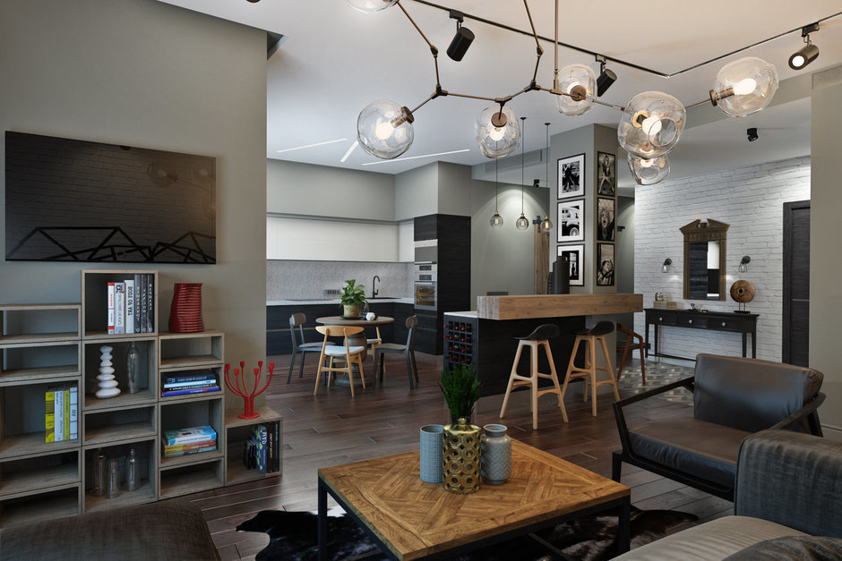 В квартире мужчины вы всегда найдете вещи, которые отражают личность хозяина: здесь может быть все, чего не позволишь себе в семейной жизни. Жилое пространство, по сути, подчинено увлечениям и хобби одного человека. Только здесь можно увидеть коллекцию фото, мини-бар, настольный футбол, проектор и экран во всю стену, баскетбольный мяч, автомобильное колесо или велосипед на стене. Дизайн может быть эклектичным, не очень функциональным, непрактичным, но максимально удобным для одного человека.
