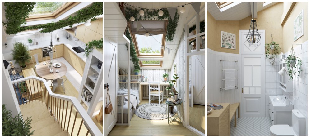 Многие предметы мы нашли в ИКЕА, кое-что будет сделано на заказ, чтобы вписать мебель в конфигурацию кровли и использовать пространство по максимуму. В качестве декора я предложила заказчикам использовать гирлянды с лампочками и вьющиеся растения – они с удовольствием поддержали эту идею и уже активно воплощают проект в жизнь».