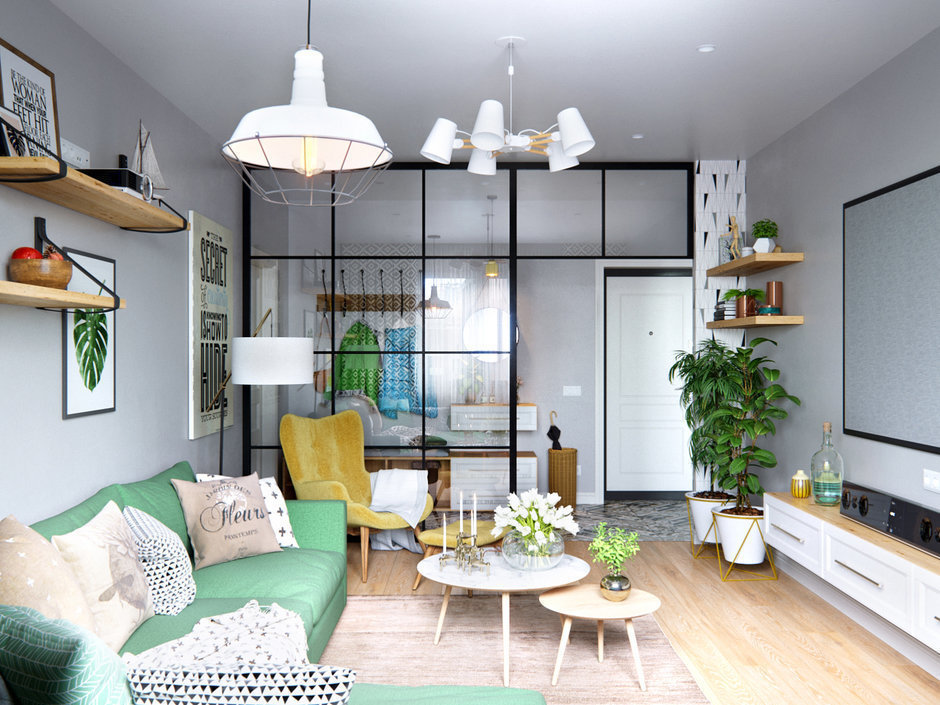 5. Гостиная с кроватью за перегородкой