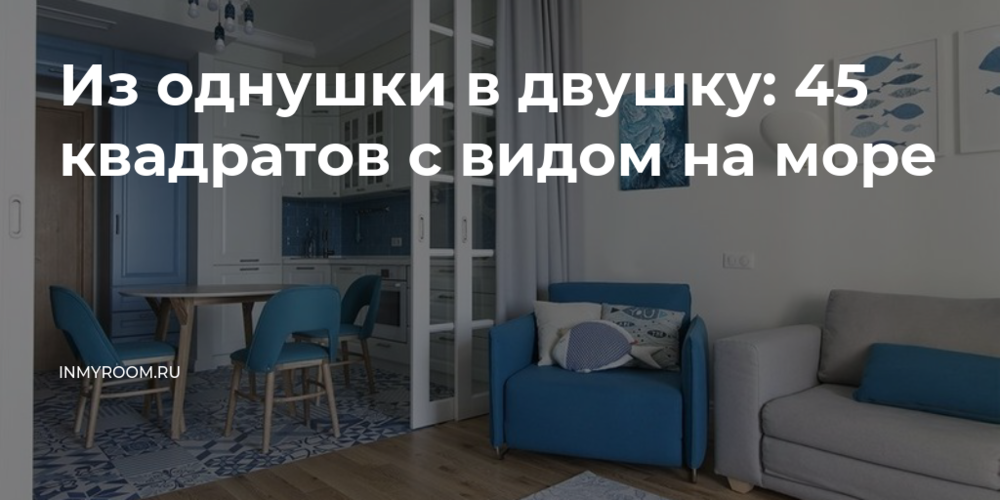 Изначальная планировка помещения площадью 45 квадратных метров предполагала объединенную кухню-гостиную, отдельную спальню и совмещенный санузел. Поскольку владельцы планировали отдыхать здесь вместе с подросшими детьми, для разных поколений нужно было продумать максимально уединенное пространство. При этом было важно не потерять легкость и воздушность помещения с панорамными окнами, террасой и видом на море.