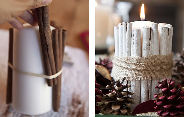 Понадобятся: свечи, палочки корицы, анис, декоративная лента или бечевка.