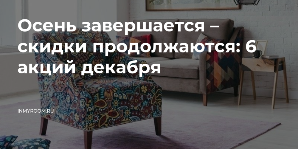 Осенний скидкопад закончился, но и первый зимний месяц не разочарует вас своими предложениями, тем более что пора уже подбирать новогодние подарки для себя и своих близких. Интересные и функциональные полки, столы, комоды, яркая мягкая мебель, бочки-столики и дизайнерские кровати с матрасом в подарок. Вы точно найдете все что нужно!
