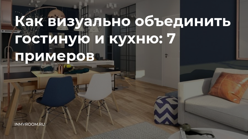 Объединение гостиной и кухни – распространенный дизайнерский прием. Открытое пространство визуально кажется просторнее и светлее. А сделать его еще и целостным, единым по стилистике, поможет правильно подобранные отделочные материалы, мебель, освещение и декор. Мы выбрали среди проектов российских дизайнеров 7 разных вариантов визуального объединения кухни и гостиной.