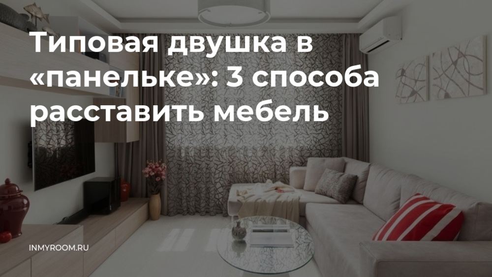 Для пары, которая часто принимает гостей, большую комнату отведем под гостиную. Здесь появится большой угловой диван, который можно разложить на случай непредвиденной ночевки. Изменим конфигурацию стены между гостиной и коридором и по обе стороны от нее установим шкафы. Еще один шкаф появится в коридоре вместо существовавшей по плану кладовки. Здесь же установим пуф, открытую вешалку для одежды и зеркало, а также стиральную машину в нише за дверью.