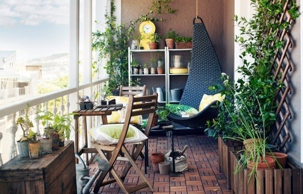 Не забудьте дополнить домашнее патио растениями в больших горшках. Особенно эффектно будут смотреться миниатюрные деревца или кустарники. На солнечных балконах можно высаживать карликовые яблони, абрикосы и другие плодовые, а для балконов с обилием тени подойдут миниатюрные хвойники или папоротники.