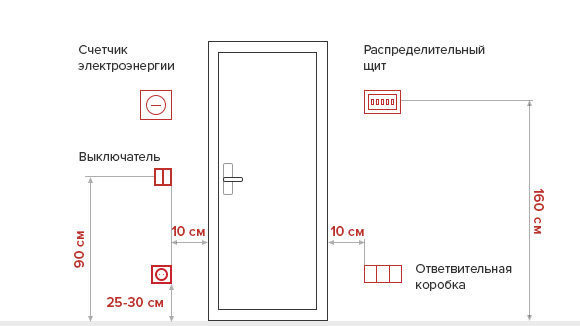 Если вам необходима розетка у двери в гостиную, размещайте ее на высоте 30 см от пола и 10 см от дверного проема.