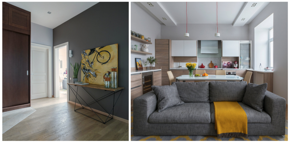 Когда заказчики поняли, что сами не справляются с ремонтом, на помощь пришли профессиональные дизайнеры. Они помогли «подружить» уже имеющуюся отделку и мебель разных стилей, придумали, как использовать открывшиеся во время демонтажа ниши, и наполнили получившийся интерьер яркими красками.
