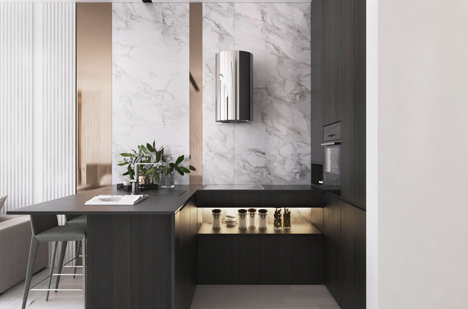 Мы привыкли, что основной цвет для минимализма — белый. Но можно пойти от обратного и отважиться на черные стены — как сделали дизайнеры студии Kameleono. Интерьер останется минималистичным, но приобретет свой характер.
