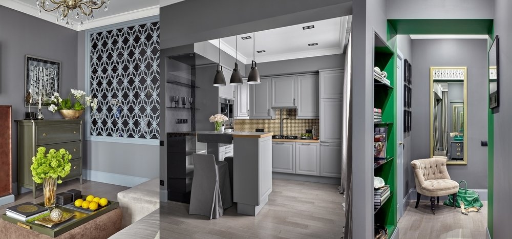Владелица квартиры живет здесь уже несколько лет вместе с собакой и двумя кошками. Они активно бодрствуют по ночам и мешают отдыху хозяйки. Поэтому она обратилась к основателям студии SODA Homedecor Оксане Станиславовой и Алене Дзуцевой за помощью. Нужно было обустроить изолированную спальню без переноса кухни.