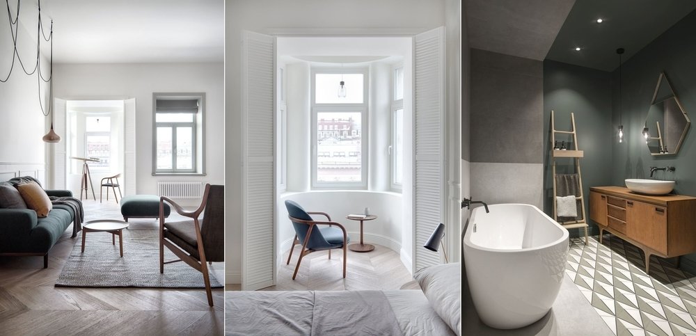Этот интерьер вполне мог быть реализован в какой-нибудь европейской столице — например, в Париже. Много воздуха и нетипичная планировка, приглушенная цветовая палитра и натуральные материалы в отделке: дизайнеры создали эффектный интерьер, подруживший историю и современность.