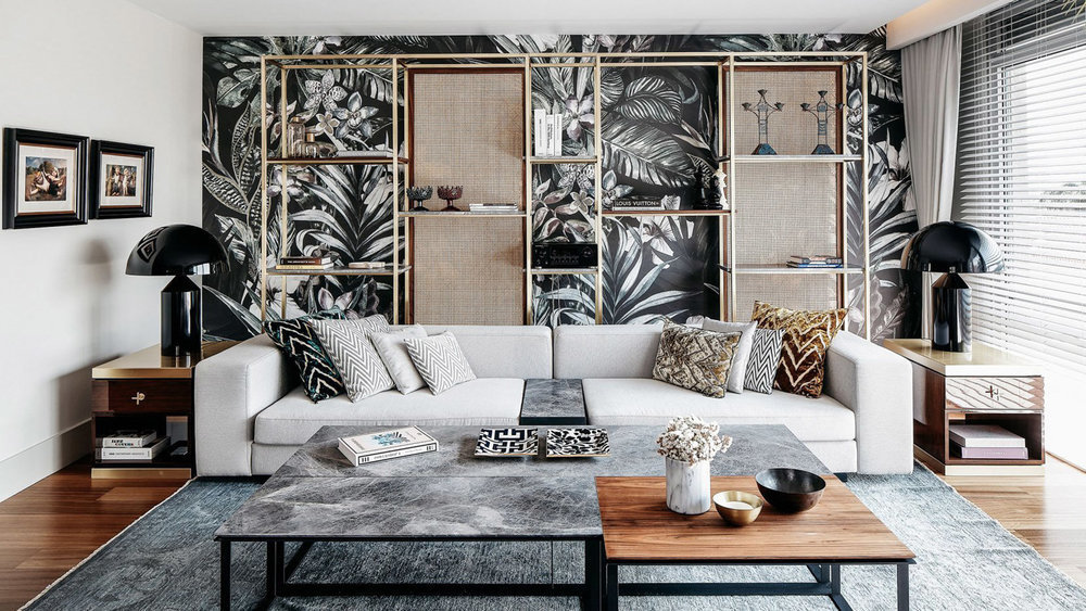 В многоцветных сочетаниях современных «джунглей» в интерьере прослеживается тенденция к приглушенным оттенкам и черно-белой гамме. Нейтральная отделка — не только классное, но и «умное» решение: даже когда тренд пойдет на спад, спокойные обои вроде Sirpi Textil Grand Classic останутся актуальными и не будут раздражать.