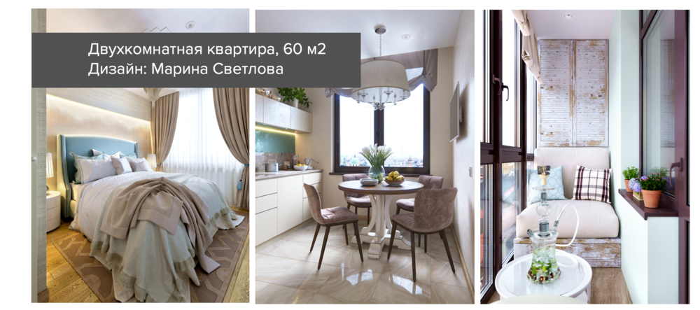 У двухкомнатной квартиры хорошая площадь (60 квадратов) — это всегда отличная возможность для дизайнера создать интерьер, который идеально отражает характер и отвечает всем потребностям заказчика.