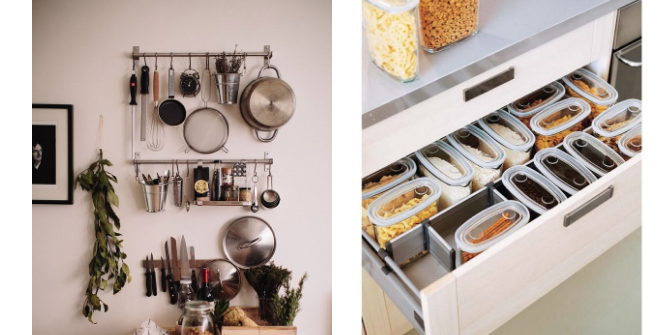 А если на маленькой кухне нет места для духовки, встройте в навесной шкаф СВЧ с функцией духового шкафа.