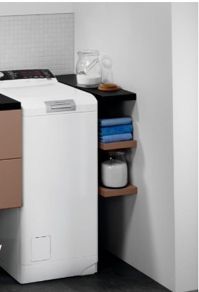 Вертикальная загрузка, плавное открывание дверцы, возможность одновременной стирки до семи килограммов белья и всего 40 сантиметров ширины — эта машинка создана для маленьких ванных комнат.