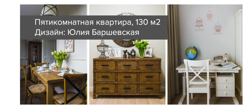 В 90-е годы прошлый владелец квартиры сделал здесь незаконную перепланировку. Поэтому, прежде чем перейти к оформлению интерьера, дизайнеру Юлии Баршевской пришлось полностью перекроить пространство. В результате на 130 квадратных метрах появились спальня с отдельной гардеробной и кабинетом, две детские и большая кухня-гостиная.