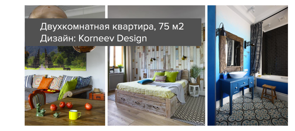 В этой двухкомнатной квартире сделали перепланировку и потратили на ремонт девять месяцев. В результате получилось удобное общее пространство кухни-гостиной и приватная спальня. С отделкой и мебелью не скромничали: в ход пошли обои с активным принтом, амбарные доски и мебель с блошиного рынка — все, как просила заказчица.