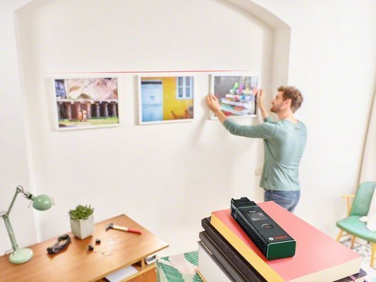 Совет INMYROOM: повесить несколько постеров в ряд ровно — задача не из простых. Особенно если выполнять ее в одиночку. Однако с современными устройствами и это не проблема. Например, новый дальномер Zamo от Bosch с функцией дополнительного оснащения насадками может помочь не только с замерами пространства, но и выступит в роли простейшего лазерного нивелира при использовании специального адаптера.