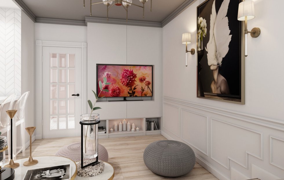 Кстати, маленькая площадь — не повод отказываться от телевизора с большой диагональю. Смотреть кино на экране размером 65 дюймов комфортно с любого расстояния за счет высокого качества изображения.