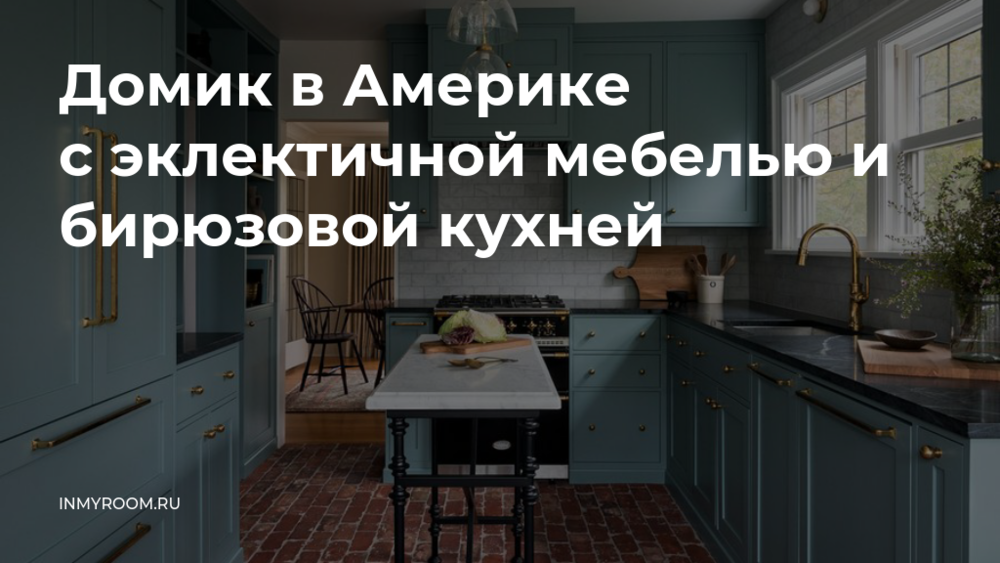 Остров в итоге заменили на более легкую конструкцию на высоких ножках, на пол положили красно-коричневый кирпич, а гарнитур выполнили в насыщенном бирюзовом цвете.