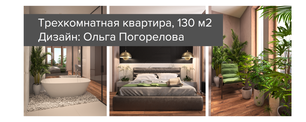 «Приватная зона — это не одна комната, а группа помещений, — рассказывает Ольга Погорелова. — Мы объединили здесь несколько зон: спальню, зону отдыха на лоджии, ванную комнату и гардеробную».