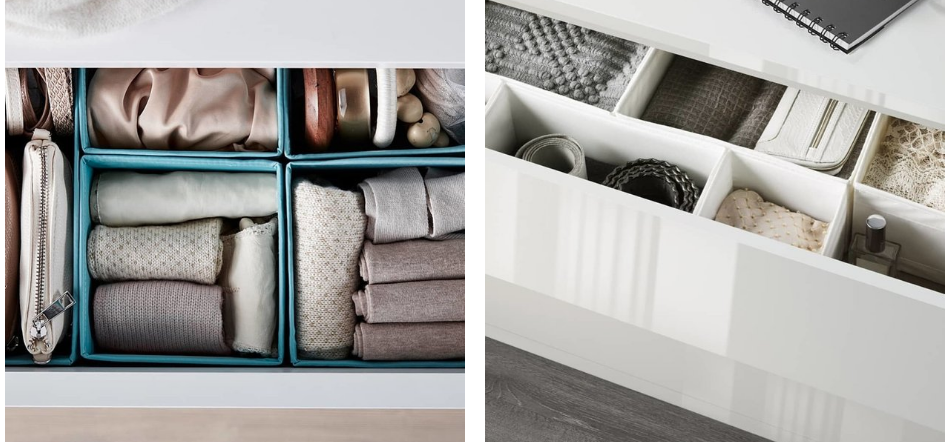 - Носки, ремни, украшения будут всегда в порядке, если в ящиках комода разместить их в контейнерах с ячейками или разделителями.