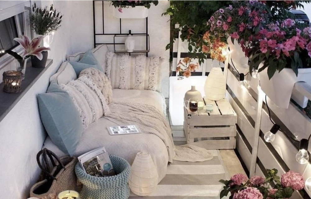 Кстати, горшки с цветами можно подвесить к потолку на веревках. Или разместить на стене шпалеру и прикрепить на нее кашпо с помощью S-образных крючков.