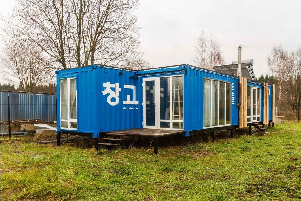«Дом построили из двух 40-футовых морских контейнеров: в единую конструкцию их сварили на производстве в городе Клин. Там же вырезали все нужные проемы, установили панорамные окна и двери, — рассказывает автор проекта Ксения Налетова. — Межкомнатные стены — это гипсокартон на деревянном каркасе. Утепление обеспечило напыление пенополиуретаном: с учетом трехкамерных энергоэффективных окон создается эффект термоса — дом хорошо держит тепло зимой и прохладу летом».
