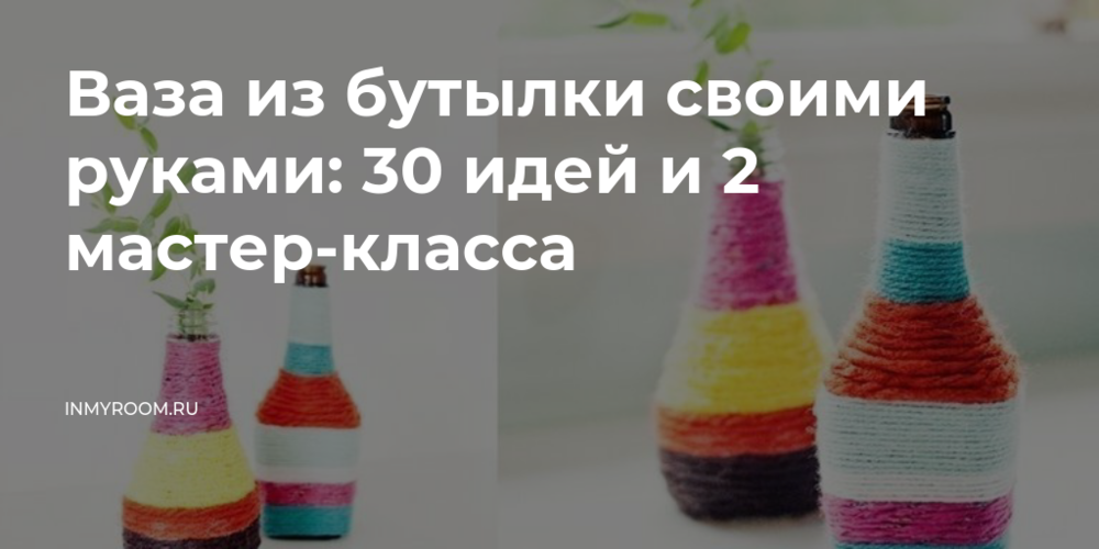 1. Для первой вазы нужно: бутылка или банка любой формы и цвета, пестрая веревка из натуральных волокон (рафии или джута) в рулоне или двухцветный декоративный шнур, двухсторонняя клейкая лента, ножницы.