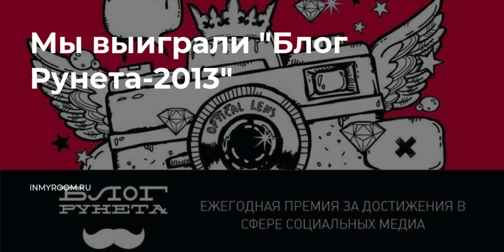 Наш портал InMyRoom.ru победил в номинации "Блог о дизайне". Мы счастливы! Спасибо вам, дорогие наши авторы! Спасибо вам, дорогие наши читатели!