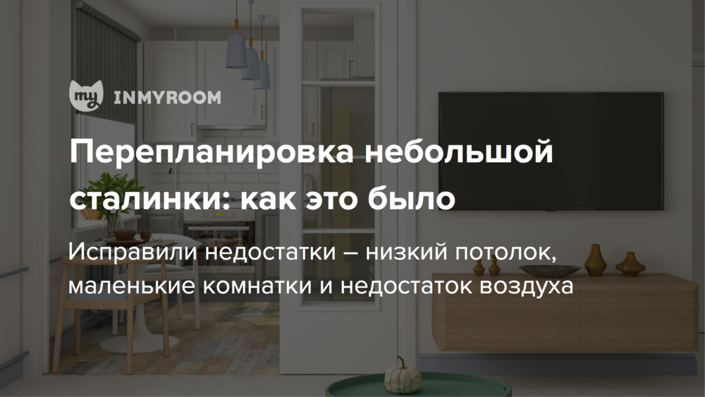 Чтобы визуально увеличить небольшое пространство. Правда, полностью объединить комнату с кухней не получилось из-за газа. Так что между комнатами предусмотрели раздвижные двери. А визуально объединить все помещения помогла отделка: светлые стены + цветной плинтус.