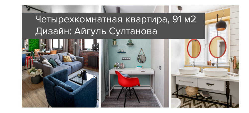 «Был жесткий запрет на использование обоев, — улыбается Айгуль, — на стенах допускалась только краска и декоративная штукатурка. Зато любимых цветов было много, но они должны были быть сложными и ненавязчивыми. В результате мы получили светлые стены, открытый кирпич, черные светильники и немного бетона и все это разбавили жизнерадостными цветовыми сочетаниями. ЗD-визуализацию утвердили с первого раза, это было стопроцентное попадание!»