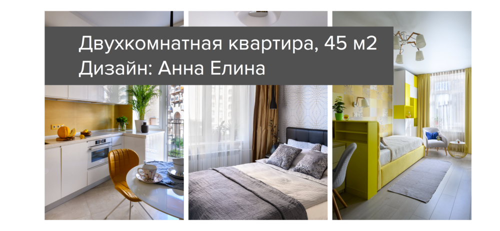 «Заказчик — пилот, много времени проводит в воздухе. Ему хотелось получить солнечный интерьер, поэтому я активно использовала в оформлении желтые и охристые оттенки. Кстати, это самые модные цвета этого года. В сочетании с белым, бежевым и серым они смотрятся отлично», — говорит Анна Елина. Детская была выполнена в тех же солнечных тонах, что и вся квартира, и только спальня в «мужских» серо-черных тонах.