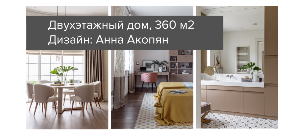 Дом, в котором живет Анна Акопян, находится в Анапе на берегу Черного моря, в нем два этажа общей площадью 360 квадратных метров. Первый этаж — это единое большое общественное пространство с выходами на террасу, где можно проводить время всей семьей. На втором этаже — личные спальни.