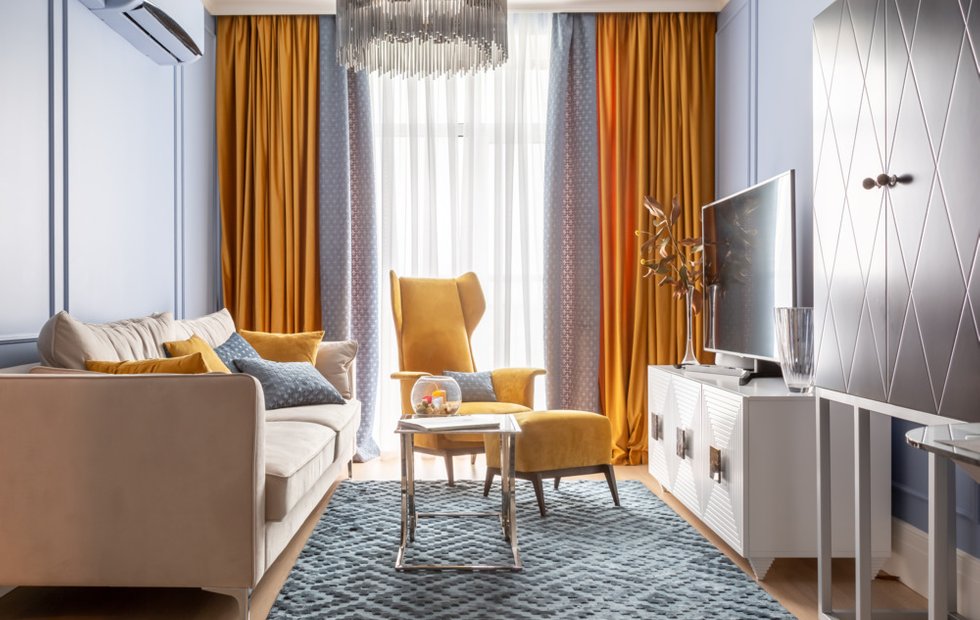 «Яркие стены расширяют пространство. Если не забыть про лепные молдинги и плинтусы, будет казаться, что в квартире высокие потолки. Хорошая идея — выкрасить в цвет стен и кондиционер, чтобы он не отвлекал на себя внимание».