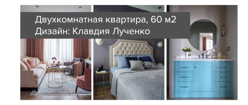 «Я очень обрадовалась, узнав, что заказчица не боится ярких цветов и готова к экспериментам с интерьером, — рассказывает Клавдия Лученко. — В итоге здесь появились изумрудные обои в прихожей, синий портал в кухне-гостиной, бирюзовая плитка и тумба в душевой. При этом фоновые оттенки довольно нейтральные: бежевый, молочный, светло-розовый, светло-серый».