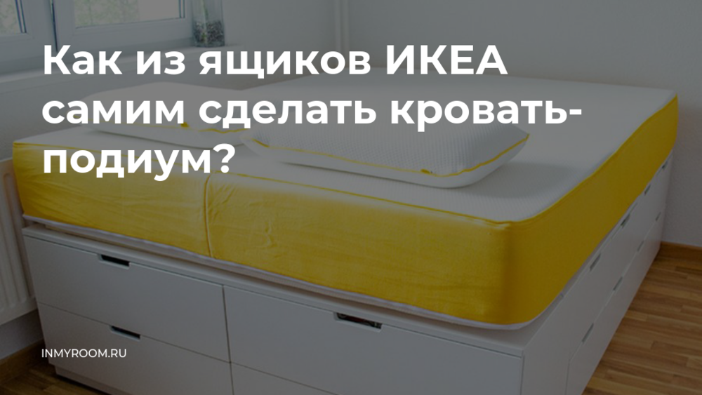 Для начала нужно собрать мебель ИКЕА и деревянные полки. После этого разместите комоды и ящики так, чтобы они образовали устойчивую раму размером 160×200 см. Соедините их с помощью уголков.