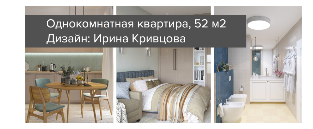 Площадь в 52 квадратных метра — достаточная, чтобы создать комфортное и удобное пространство для жизни одного человека. Планировка несколько осложнилась из-за небольшого количества окон — их всего два. Чтобы все функциональные зоны были освещены, дизайнер сделала вход в жилую комнату из кухни, объединила спальню с гостиной и отказалась от перегородок между ними.